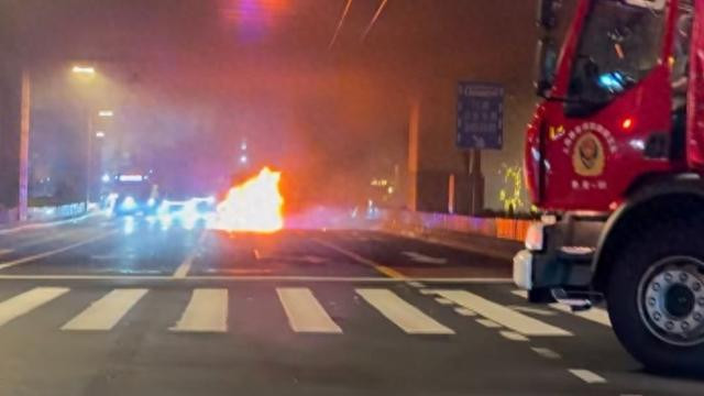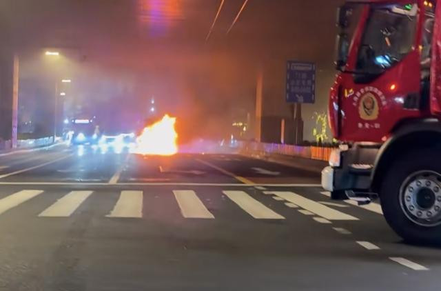 接报后,交警、消防等部门立即赶赴现场。静安消防救援站的消防队员铺设水带并出水灭火,现场明火很快熄灭。明火熄灭后,现场仍弥漫着烟雾,空气中有烧焦的气味。